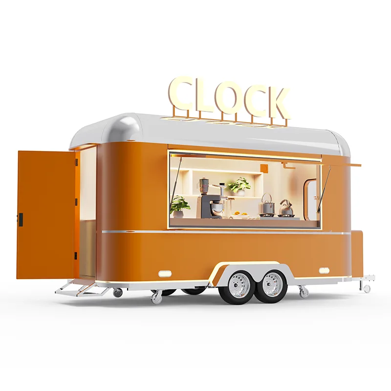 Het product beschikt over een frame van zwaar staal en is uitgerust met versterkte trekinrichtingen en een zeer stabiel ophangsysteem. Het kan gemakkelijk worden gesleept door pick-up trucks of vrachtauto's en is geschikt voor verschillende wegen, zoals stedelijke wegen, buitenlocaties en tentoonstellingsparken. Het is handig in gebruik en duurzaam. Het hoofdgedeelte maakt gebruik van voedselveilige isolatie en anticorrosiepanelen die door het hele gebied zijn afgedicht, waterdicht en roestbestendig. Er wordt rekening gehouden met isolatie en warmte-isolatie, maar ook met de weerbestendigheid buitenshuis. Het uiterlijk ondersteunt een aangepast merk, ingebouwde reclamelichtbakken en opvouwbare parasols, die niet alleen het merkimago kunnen benadrukken, maar zich ook kunnen aanpassen aan buitenservicescenario's. Het interieur is volledig gemaakt van 304 roestvrij staal. De werkbladen, wanden en vloeren zijn antislip, oliebestendig en gemakkelijk schoon te maken en te desinfecteren en voldoen volledig aan de gezondheidsnormen van de horeca.